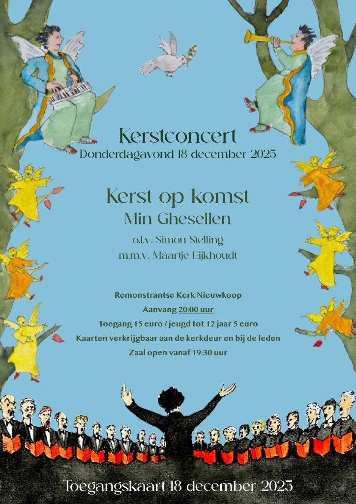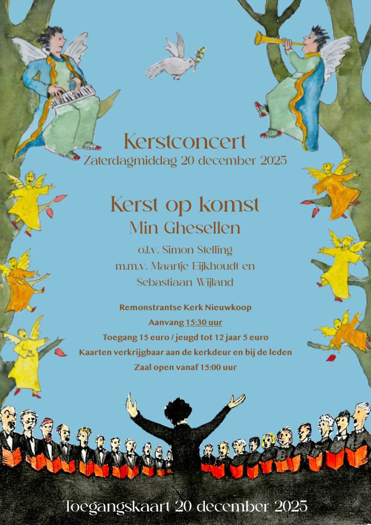 MIN GHESELLEN (mijn gildebroeders) is een gemengd koor van 45 leden. Het koor oefent in de Remonstrantse Kerk in Nieuwkoop, gelegen in het “Groene Hart” van Nederland en verleent haar medewerking aan diverse kerkdiensten.
