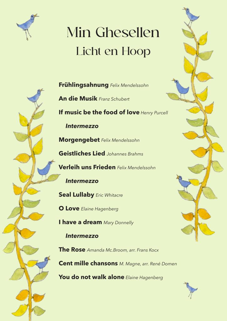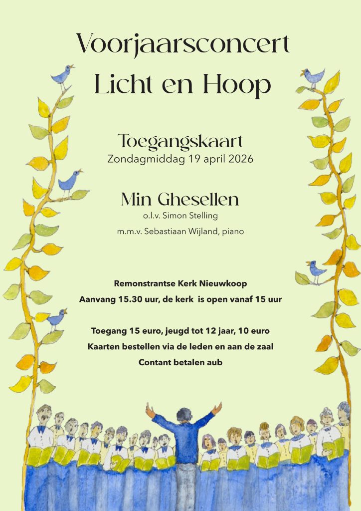 MIN GHESELLEN (mijn gildebroeders) is een gemengd koor van 45 leden. Het koor oefent in de Remonstrantse Kerk in Nieuwkoop, gelegen in het “Groene Hart” van Nederland en verleent haar medewerking aan diverse kerkdiensten.